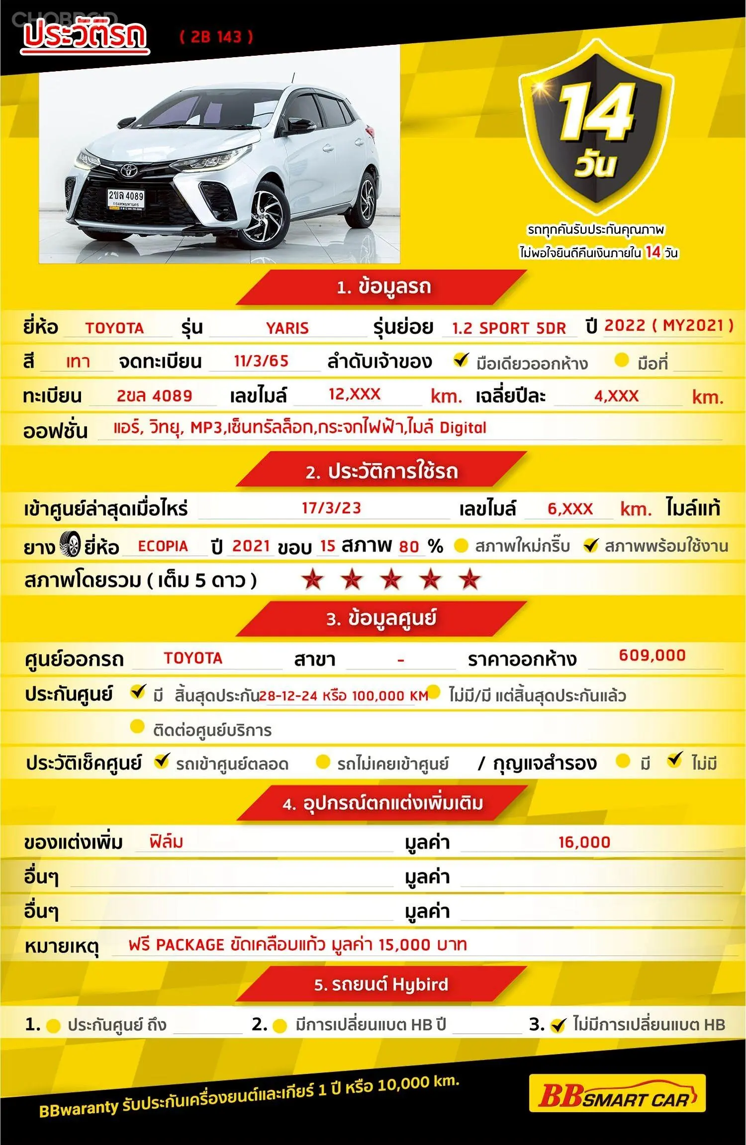 2B143 Toyota Yaris 1.2 Sport 2022 รถสวยสภาพดี